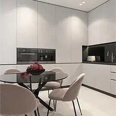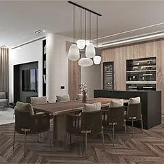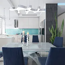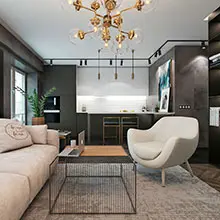 of the kitchen and living room in an apartment of 110 sq.m