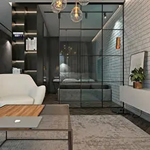 Design project of studio apartment in the loft style