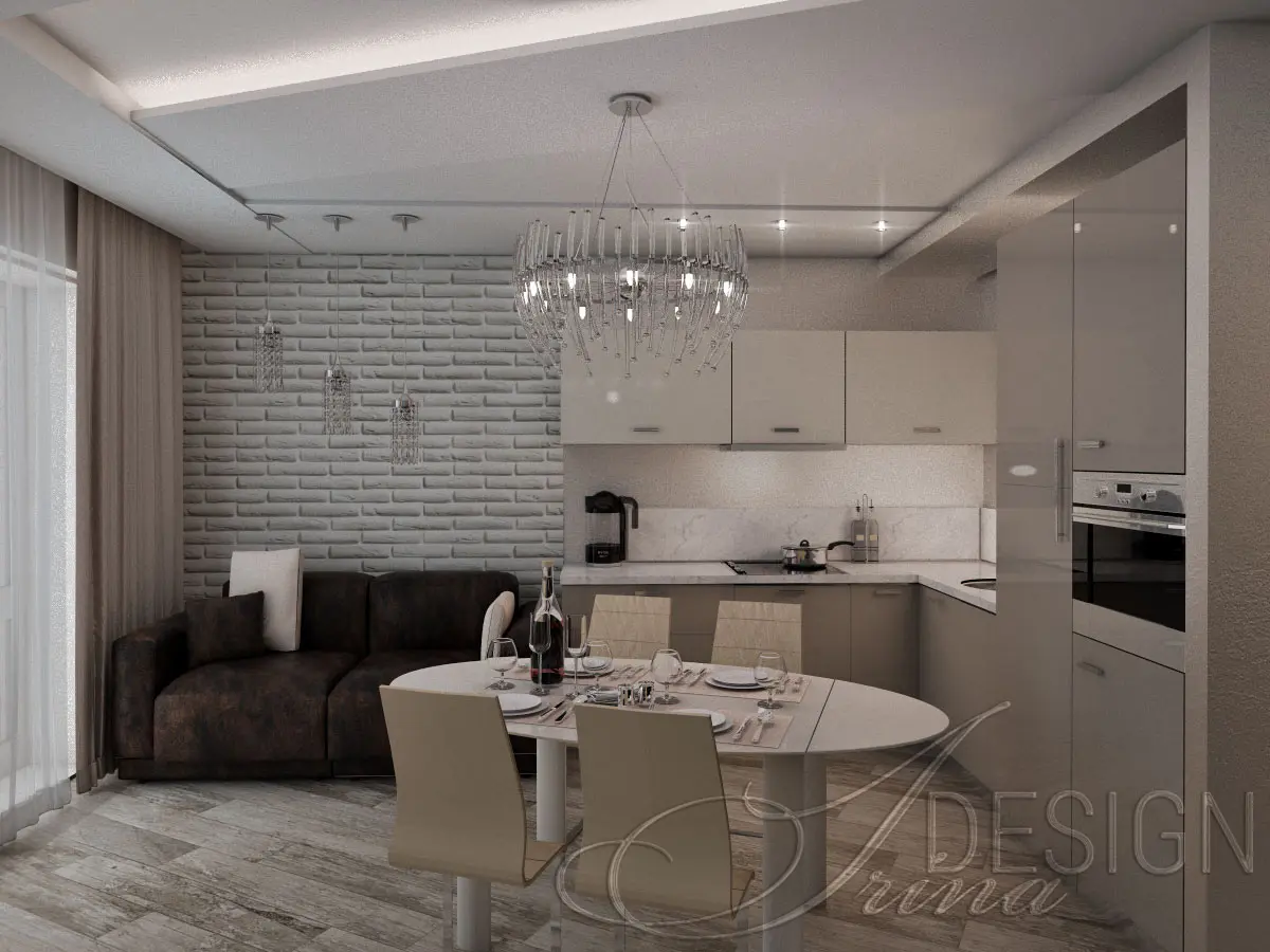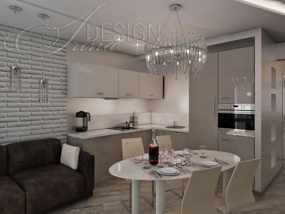 Design project of a kitchen-studio.